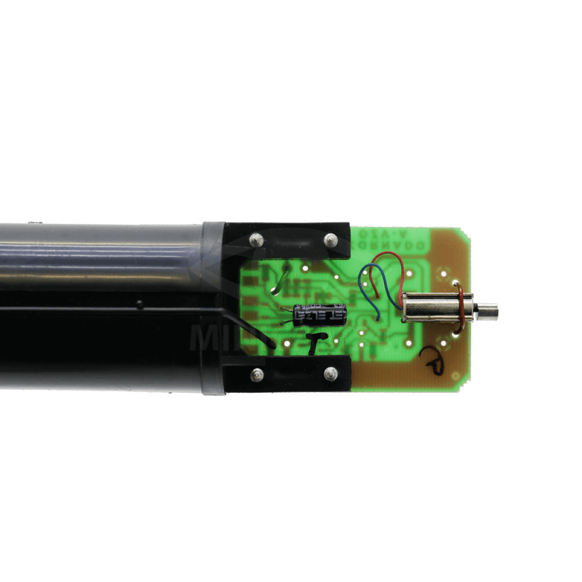 Устройство вибрационного действия. Вибромотор периодически, с разными интервалами времени включается и передает колебания в почву. На кротов такие колебания оказывают беспокоящее воздействие и они стремятся покинуть опасную для них зону. Устройство способно защитить от кротов участок в 2000 м2.